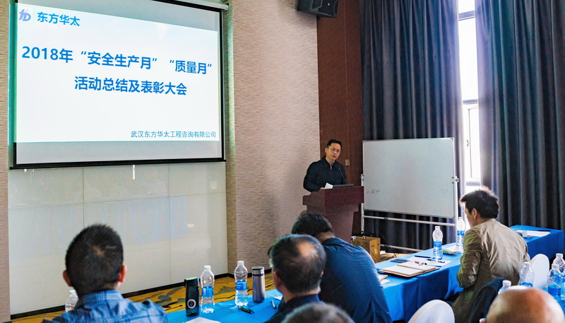 東方華太“安全生產月”、“質量月”及監協知識競賽頒獎大會,于2018年11月3日在蘇美道森酒店18樓會議室召開,會議由監理管理部主持,公司領導、各監理業務部負責人、現場項目負責人、青年骨干代表共計80余人參加了本次會議。