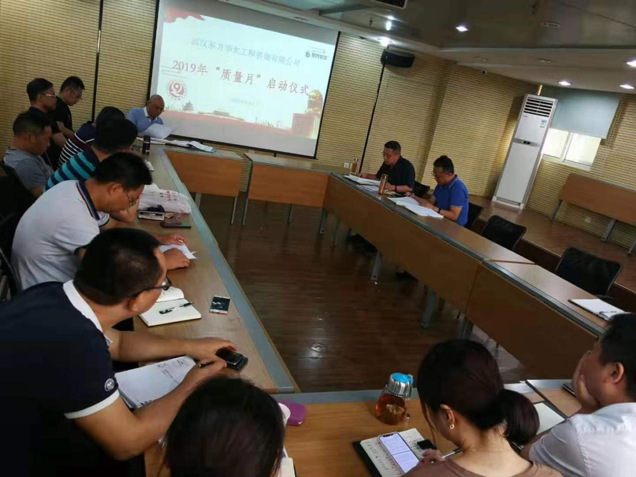 2019年9月6日,武漢東方華太咨詢工程有限公司在公司1#樓4樓會議室召開了公司2019年度“質(zhì)量月”啟動儀式。公司總經(jīng)理付火箭、總工程師陳勇、副總工程師朱高華及監(jiān)理業(yè)務(wù)管理部、咨詢業(yè)務(wù)管理部相關(guān)負(fù)責(zé)人及獨(dú)立核算團(tuán)隊(duì)負(fù)責(zé)人參加了會議。